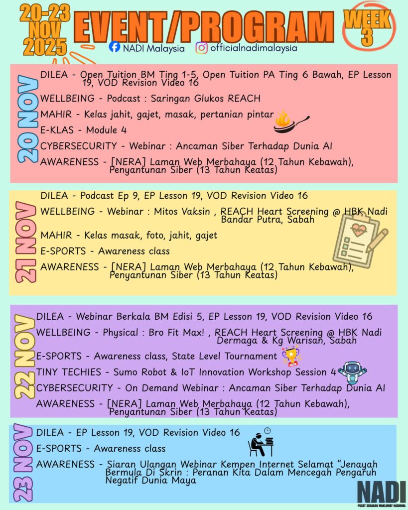 JADUAL PROGRAM DI NADI BAGI MINGGU KE-3
