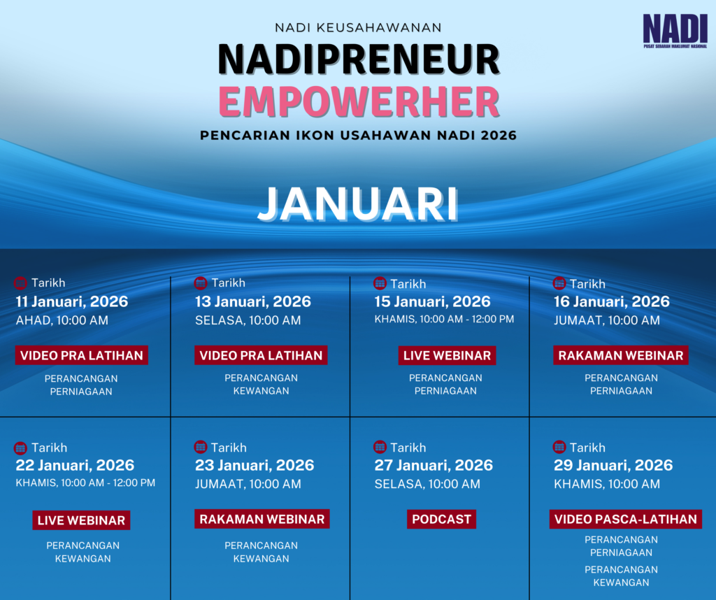 Program NADIPRENEUR EMPOWERHER merupakan inisiatif bagi memperkasa usahawan melalui latihan perniagaan yang komprehensif dan membuka peluang kepada usahawan untuk meningkatkan potensi perniagaan melalui: