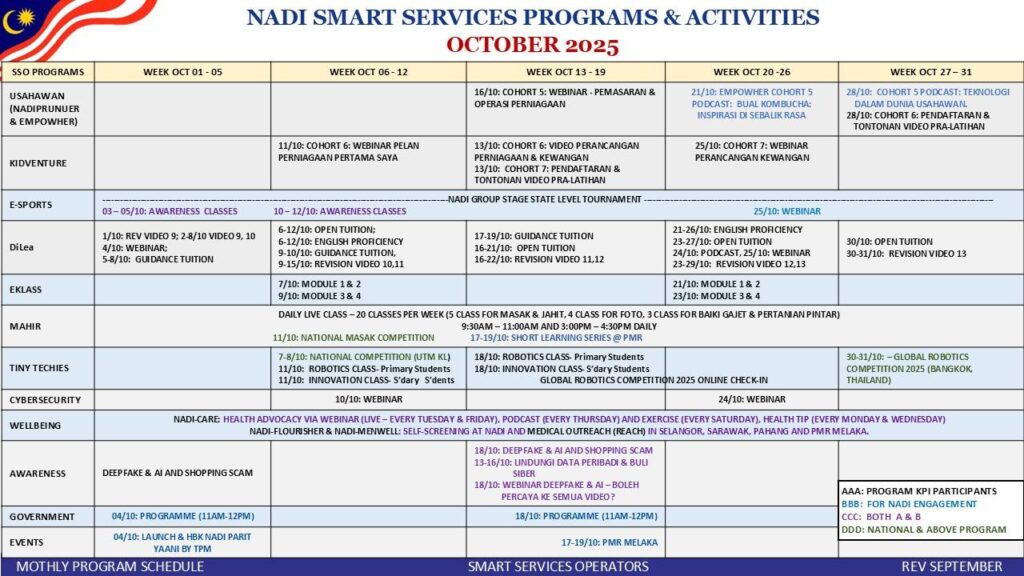 TAKWIM PERKHIDMATAN PINTAR BULAN OKTOBER 2025